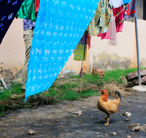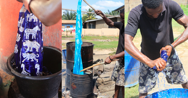 しかし、ガーナには昔ながらの手染めで臈纈防染されたテキスタイルが今なおつくられているのです。