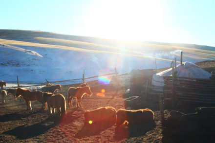 首都ウランバートルから西へ230km、 かつてのモンゴル帝国の首都ハラホリンを訪ねました。 世界遺産や遺跡の多いこの土地は、夏には観光客で賑わいますが、 冬のこの時期はほとんど訪れる人もなく、道には……